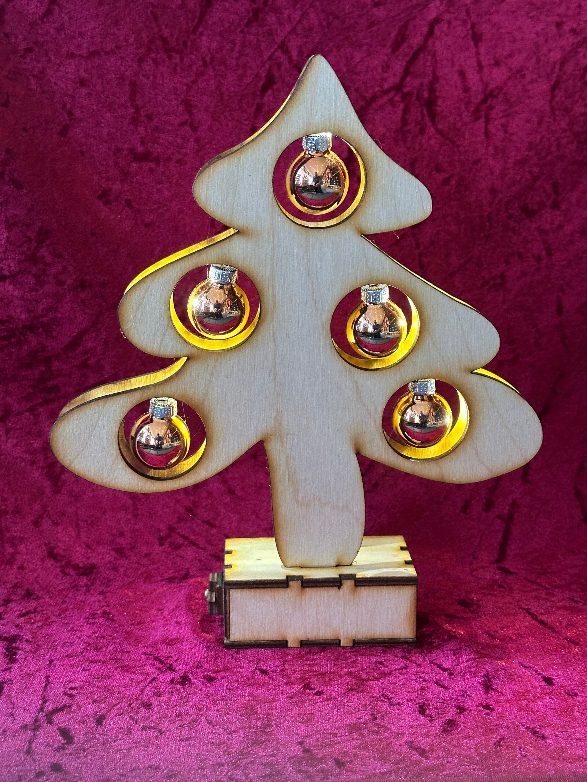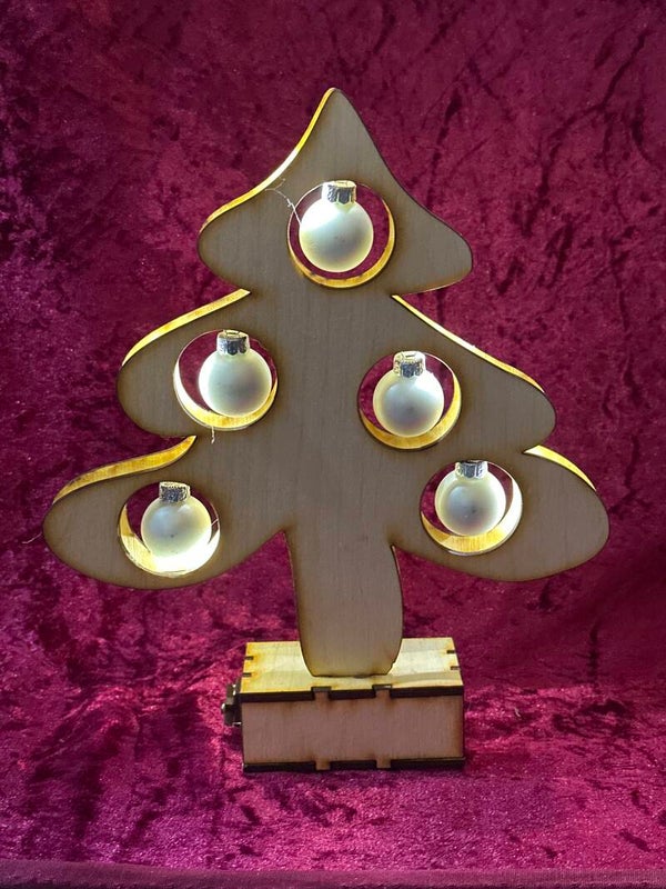 Die Tanne ist mit Glaskugel und batteriebetriebene LED Beleuchtung in der Tanne